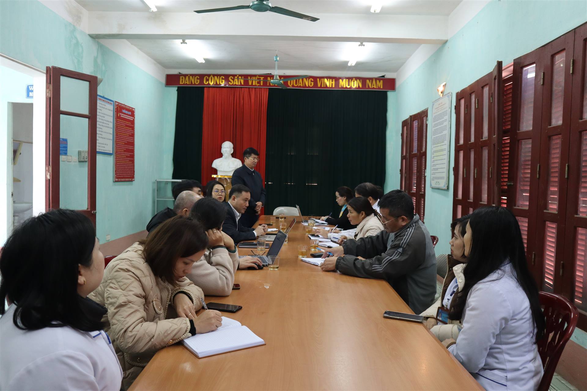 Chiều 16/2 (29 Tết), các đồng chí Trần Thị Lan Hương, Phó Bí thư Thường trực Đảng uỷ, Chủ tịch HĐND xã; Trần Mạnh Cường, Phó Bí thư Đảng uỷ, Chủ tịch UBND xã; Phạm Thị Tuyết Mai, Uỷ viên BTV Đảng uỷ, Chủ nhiệm Uỷ Ban kiểm tra Đảng uỷ cùng lãnh đạo một số phòng, ban đã đến thăm động viên và chúc Tết một số đơn vị đang làm nhiệm vụ trực Tết
